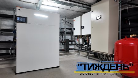 «Система базується на геотермальному тепловому насосі Hajster потужністю 70 кВт та двох повітряних теплових насосах із сумарною потужністю 38 кВт, також розміщені інформаційні табло з датчиками та центральна шафа управління. Нагрів гарячої води відбувається на проточній станції, виконаної з нержавіючої сталі, тобто все гігієнічно і ефективно. В одних буферних ємкостях концентрується гаряча вода для водопостачання, в інших – для опалення будинку. Повітряні теплові насоси працюють до температури +5 градусів С, а далі підключається геотермальний тепловий насос, який доводить температуру на подачі до +80 градусів. І як наслідок, мешканці будинку мають найвищу ефективність від такого рішення. Важливо, що усе обладнання виробляється в Україні», - розповів Сергій Данилов.